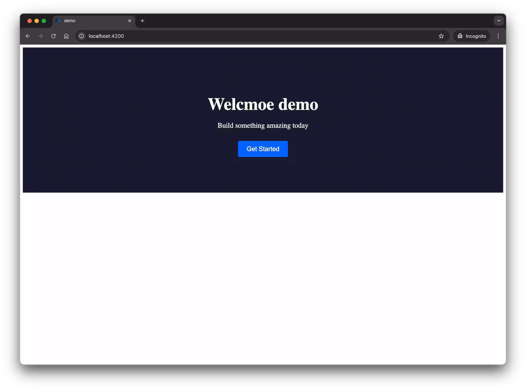 Serve your app again (npx nx serve angular-demo) and you should see the new Hero component from the ui library rendered on the home page.